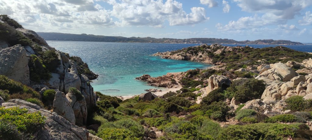 El día comenzó con un tiempo mucho mejor que el de la jornada anterior, prácticamente despejado aunque seguía haciendo algo de viento. Aun así pudimos disfrutar de las calas de color turquesa brutales de la Isla de Caprera.