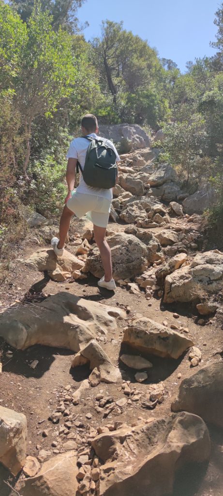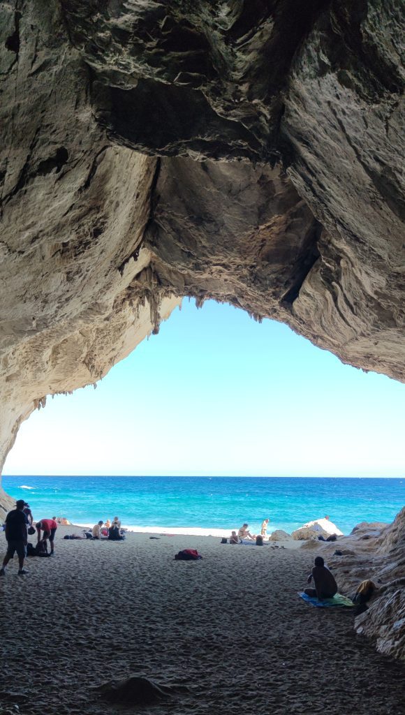 Ante este imprevisto, la única manera que había de llegar a alguna de las calas, principalmente hasta Cala Luna, era andando. Para comenzar la ruta teníamos que ir hasta Spiaggia di Cala Fuili. Desde esta playa sale el sendero para llegar hasta Cala Luna. Es un camino de hora y media o dos horas, obviamente esto depende del ritmo, con algunas partes un poquito complicadas y escarpadas. A pesar de ello es una ruta bastante bonita. A lo largo del trayecto salen algunas desviaciones del camino hacia otras calas intermedias como Spiaggia Ziu Santoru o Cala di Oddoana. Una vez llegas a Cala Luna, hay un bar-restaurante para refrescarte después del esfuerzo de la ruta. Aquí también vas a poder disfrutar de la Grotte di Dorgali, un espectacular agujero en la montaña con arena blanca finita para disfrutar de la playa.