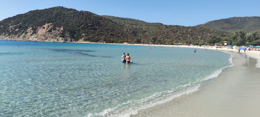 La primera playa a la que fuimos fue Cala Pira, pequeñita y muy tranquila. Después fuimos a Spiaggia di Simius, se podría decir que una playa normal aunque con una arena blanca finísima y agua turquesa. Para terminar la jornada y antes de partir hacia Cagliari fuimos a la Spiaggia di Porto Sa Ruxi.